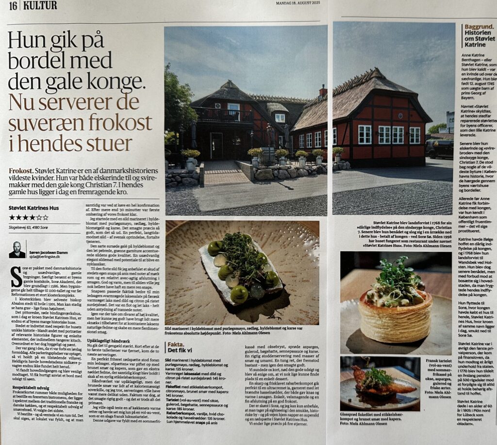 I et lille rødt bindingsværkshus ved Sorø Sø ligger Støvlet Katrines Hus med søblik fra de småsprossede vinduer i kroens hyggelige stuer. Men hvordan har Vestsjællands bedste kro fået navnet Støvlet Katrine, og hvem var hun?